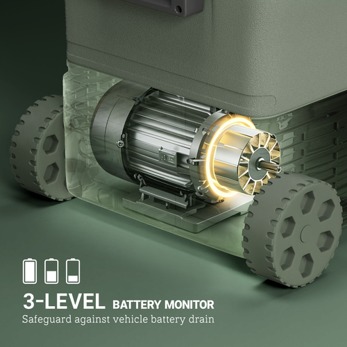 ● Battery protection settings (Low, Med, High) prevent vehicle battery drain