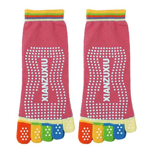 Step confidently into your yoga or Pilates practice with these pink five-toe yoga socks, designed to give you that barefoot feeling while keeping your feet protected and hygienic. Featuring a non-slip sole for secure grip on the mat, they help you stay balanced through every pose. The breathable cotton blend keeps your feet cool and comfortable, while the thin, lightweight design offers freedom of movement. Perfect for studio sessions or home workouts, these yoga socks are a practical and stylish addition to your fitness kit.